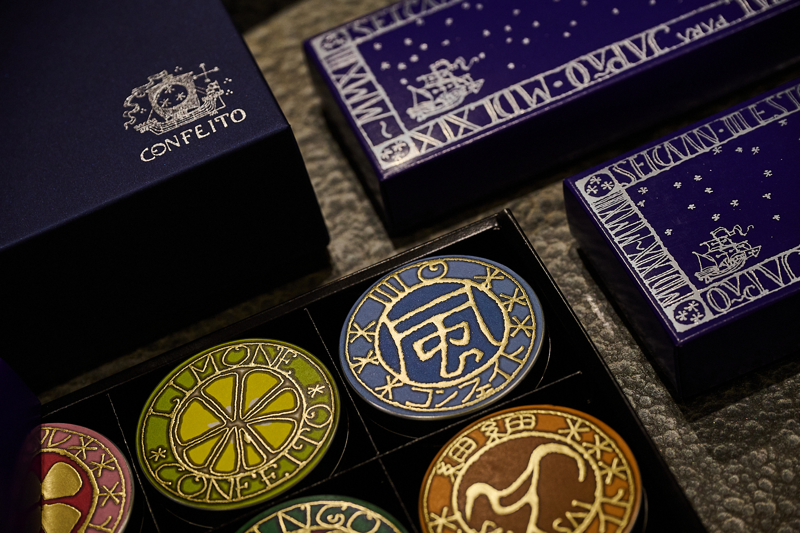 誰かに贈り物をするなら、中身が上質なことはもちろん、パッケージが素敵だとさらに喜んでもらえるはず。プチギフトに人気の金平糖「星果庵」の缶や、サミットや大阪・関西万博などで世界の国賓に提供されたボトリングティー「ゴッタス」も綿貫氏作のボトルや箱は洗練された高級感があり、まるで芸術品と評判。飲んだ後も、インテリアや花瓶として使用できます。