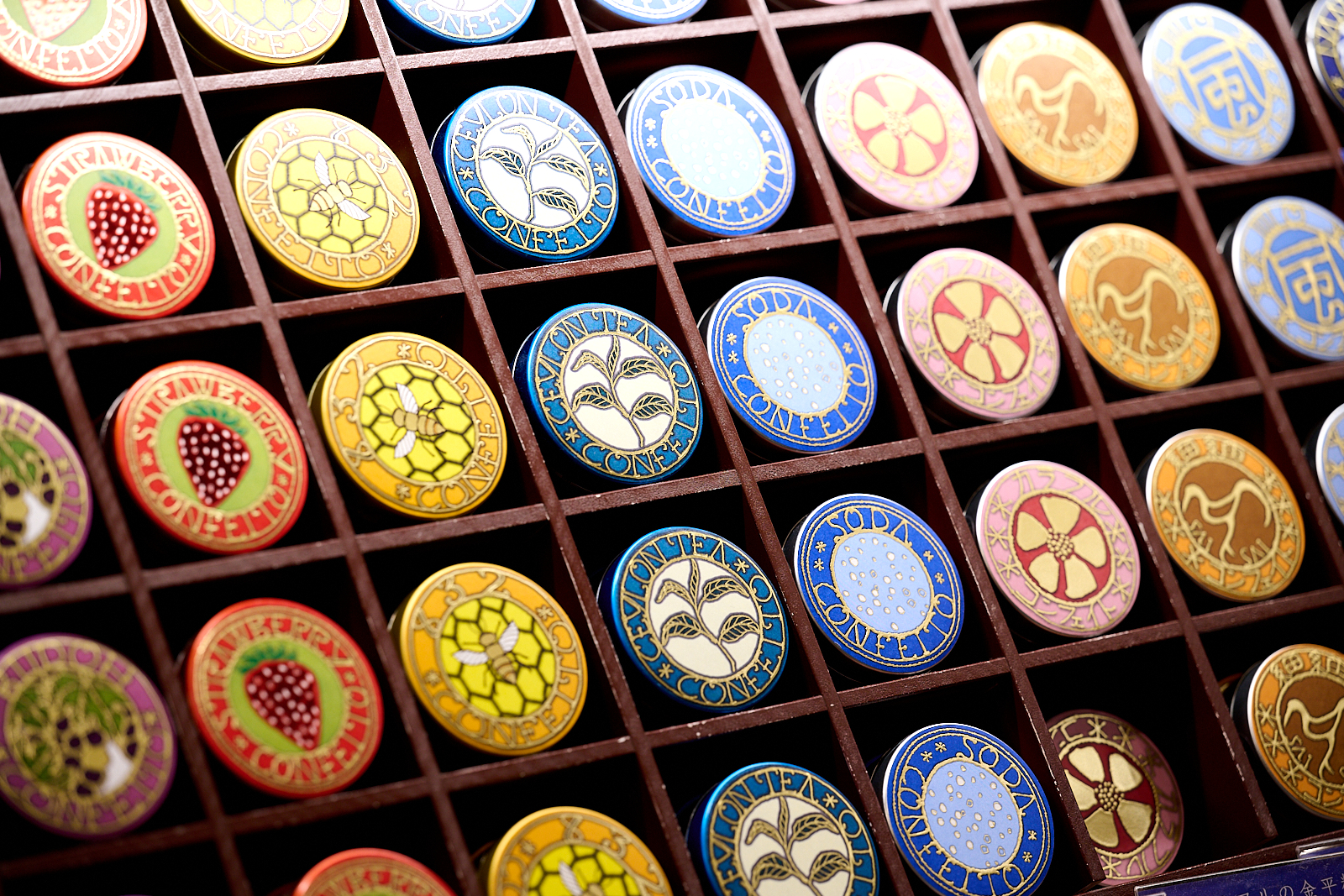 宇治園のロゴを始め、茶葉や金平糖などの主力商品のパッケージ、心斎橋本店のインテリアから紙袋に至るまで、上質だけれど気取らないその世界観を表現しているのが、綿貫宏介氏のデザイン。独特のタッチのカリグラフィやイラストで、歴史と伝統を感じさせながらも決して古くならない、他と一線を画す洗練さを印象づけています。